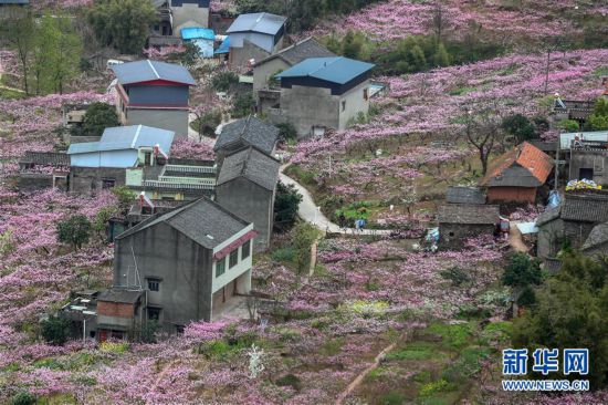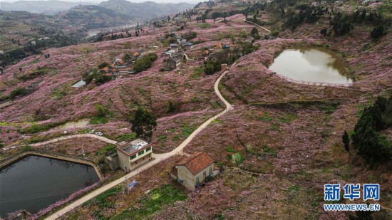 3月21日,桃花在成都龍泉驛區(qū)龍泉山盛開(無人機(jī)拍攝)。新華社記者 張玉薇 攝