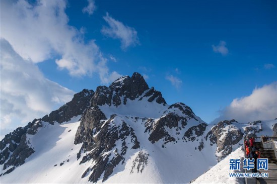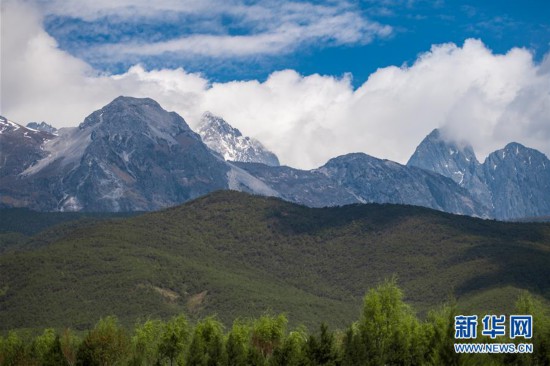 玉龍雪山位于云南省麗江市西北部,主峰海拔5596米,山頂終年積雪,山腰常有云霧,遠(yuǎn)遠(yuǎn)望去,宛如一條玉龍騰空而得名。 新華社記者 胡超 攝