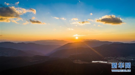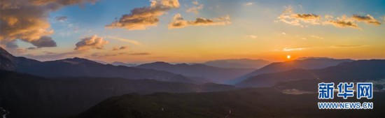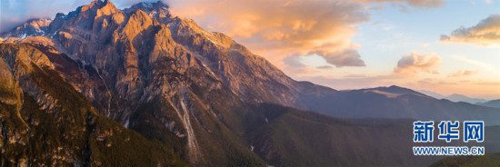 在玉龍雪山風(fēng)景區(qū)拍攝的日出美景(4月21日無(wú)人機(jī)拍攝)。新華社記者 胡超 攝