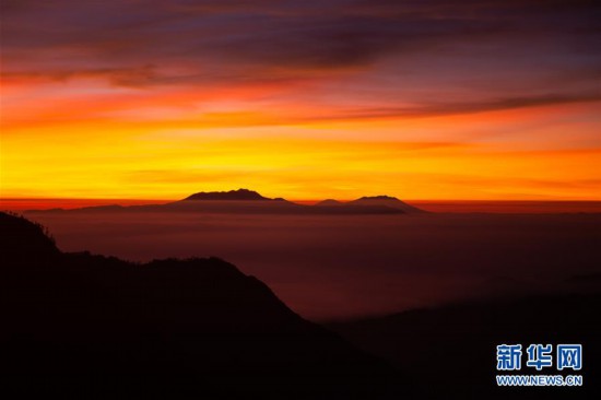 這是5月16日清晨在印度尼西亞東爪哇省布羅莫火山群附近拍攝的朝霞。新華社記者 杜宇 攝
