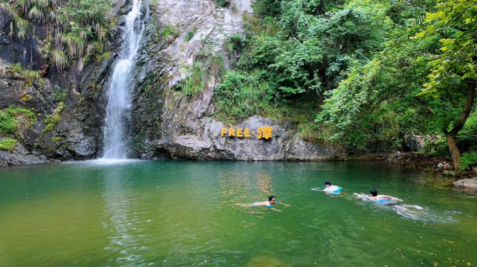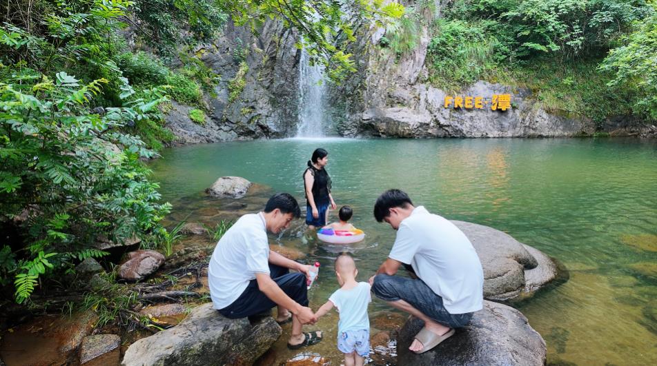 盛夏時(shí)節(jié),烈日炎炎。安徽九華山風(fēng)景區(qū)古十景之一的舒潭印月瀑布,流水潺潺,綠樹成蔭。這片隱藏在青山綠水間的天然氧吧,吸引了不少游客前來(lái)避暑納涼、品味“村咖”。(吳錦平 文/圖)