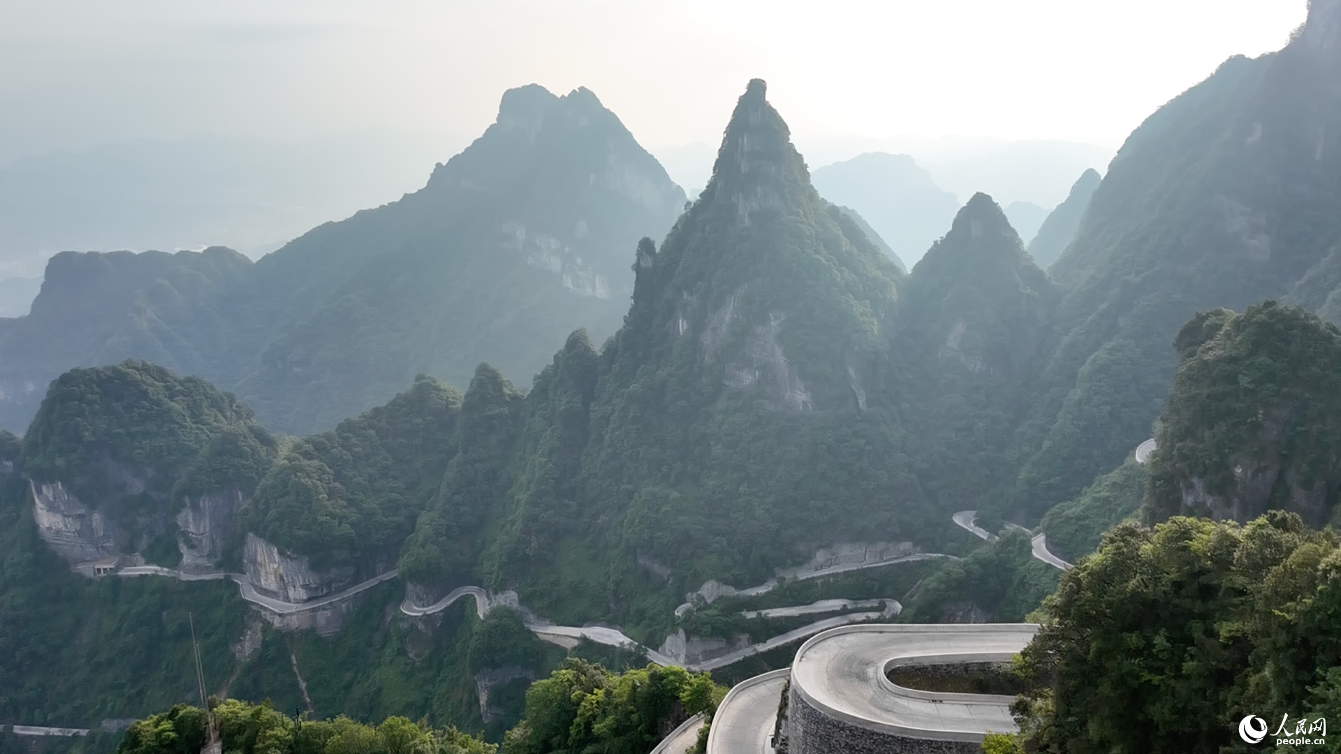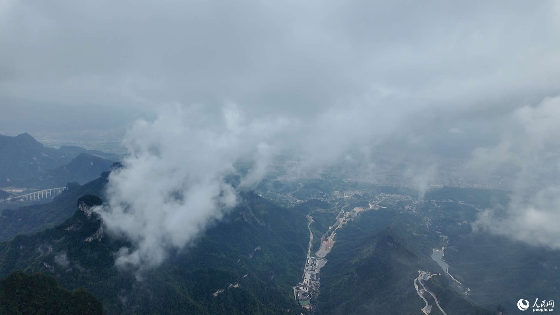 張家界天門(mén)山景區(qū)云霧繚繞。人民網(wǎng) 黃卓攝