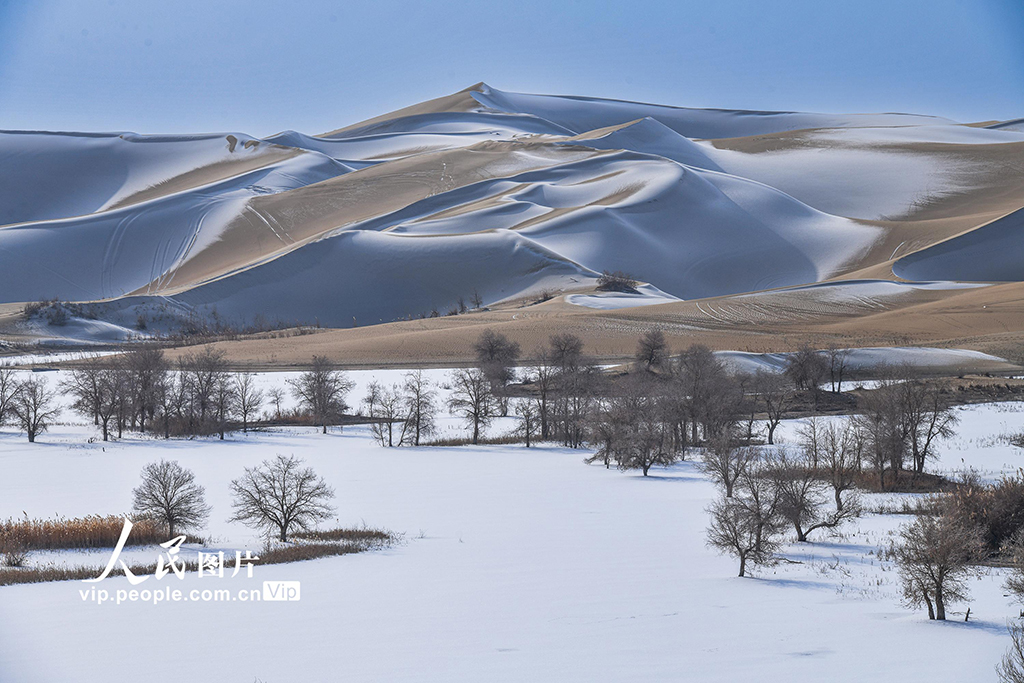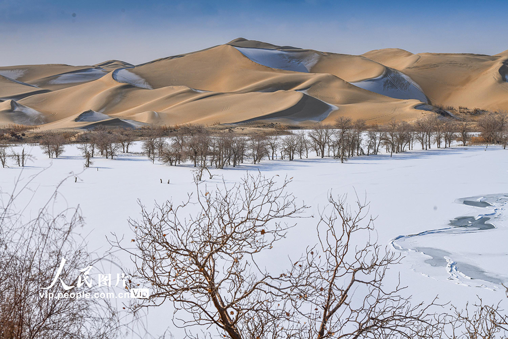 2026年1月5日,新疆尉犁縣葫蘆島雪后銀裝素裹,大漠一片蒼茫。韓峻攝(人民圖片網(wǎng))