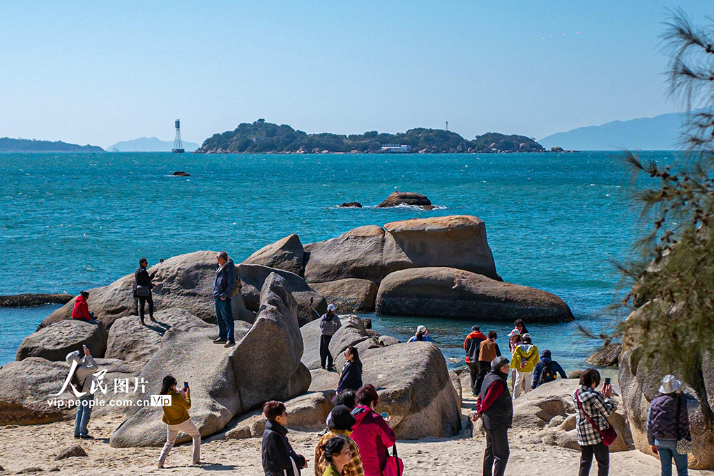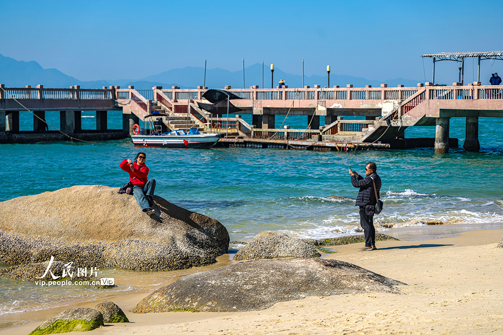 冬日時(shí)節(jié),不少游客來到廣東惠州巽寮灣,漫步于細(xì)軟沙灘,欣賞蔚藍(lán)海景,感受溫暖宜人的海濱冬日。王初攝(人民圖片網(wǎng))