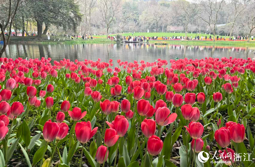 人民網(wǎng)杭州3月18日電 (張帆、章勇濤)春風(fēng)送暖,西子湖畔春意盎然。近日,杭州太子灣公園內(nèi)數(shù)十萬株郁金香次第綻放,紅、黃、粉、紫等各色花朵連片成海,與碧水綠樹相映成趣,勾勒出江南春日的動(dòng)人畫卷。