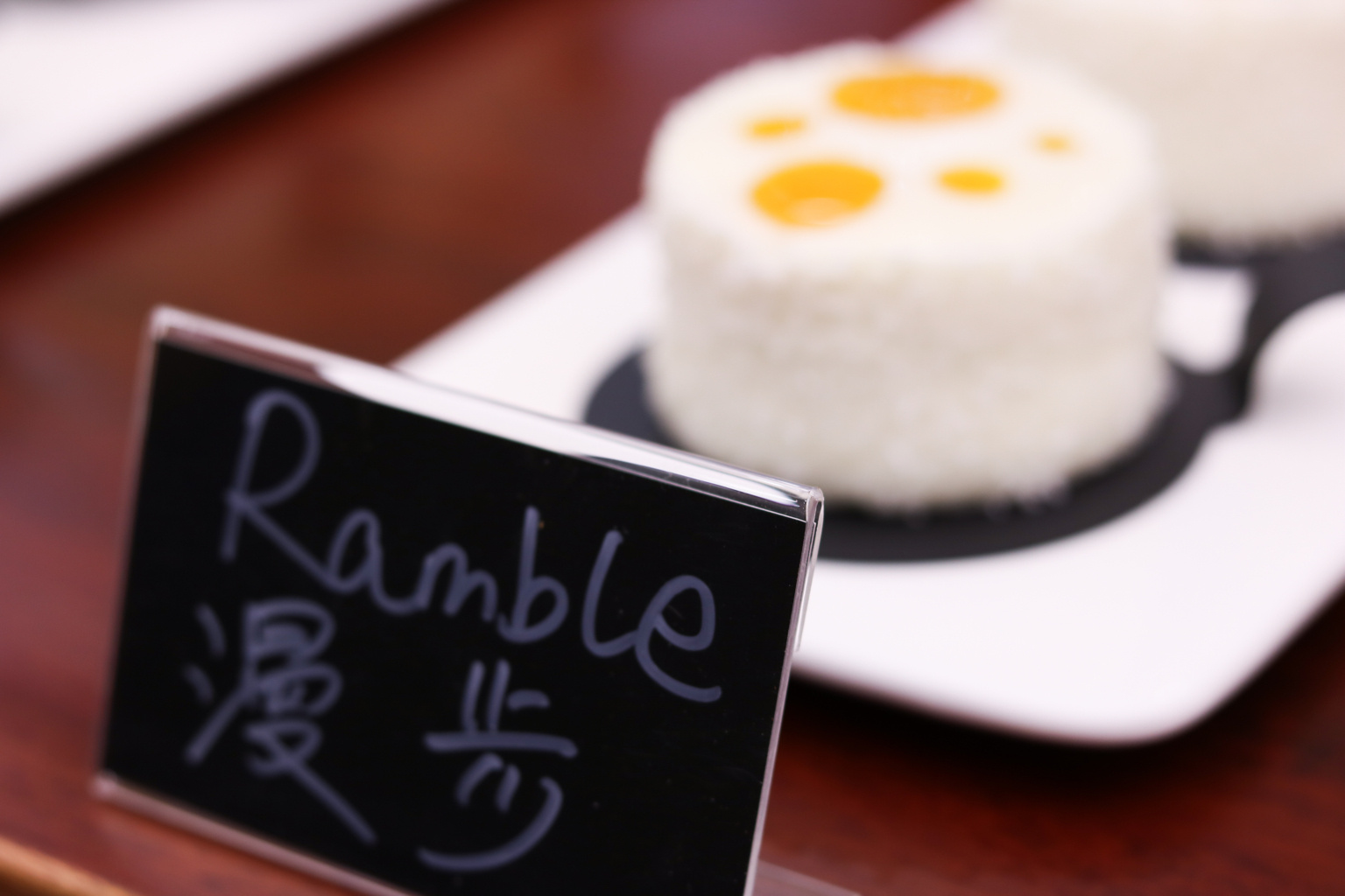 蘿莉塔:橙黃色的明亮主基調(diào)搭配兩朵可愛的小雛菊,恰似一個可愛小蘿莉。酸奶加上檸檬,佐以草莓醬。檸檬的鏡面層看上去輕巧華麗。剛?cè)肟谒幔斦捉罆r,草莓醬的甜才真正被激發(fā)出來,整體輕盈順滑,就像蘿莉樣的輕巧可人。蘿莉塔真的名至實歸。