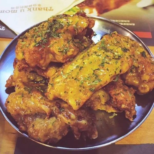 “謝你媽”來自韓國的炸雞,整個地方設(shè)計簡潔大方。