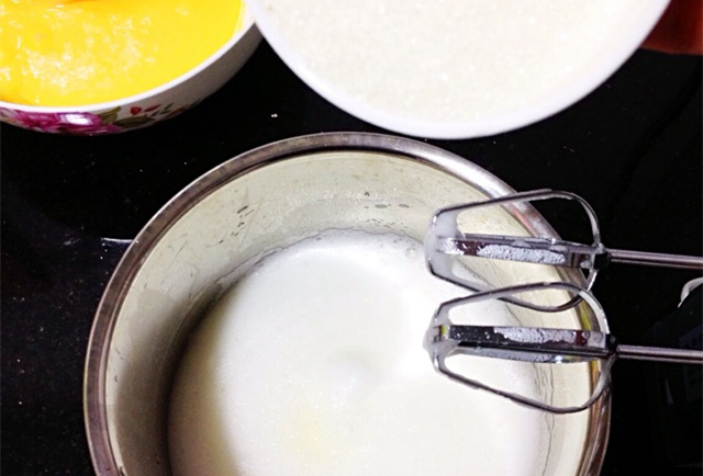 2. 分離蛋白和蛋黃,分別裝在兩個容器里,裝蛋白的盆一定要無油無水。