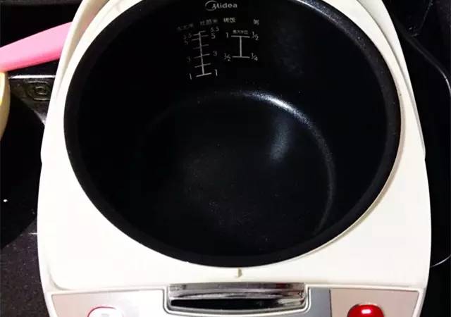 11. 電飯鍋內(nèi)膽取出,擦干水份再放入,按下煮飯鍵預(yù)熱五分鐘。