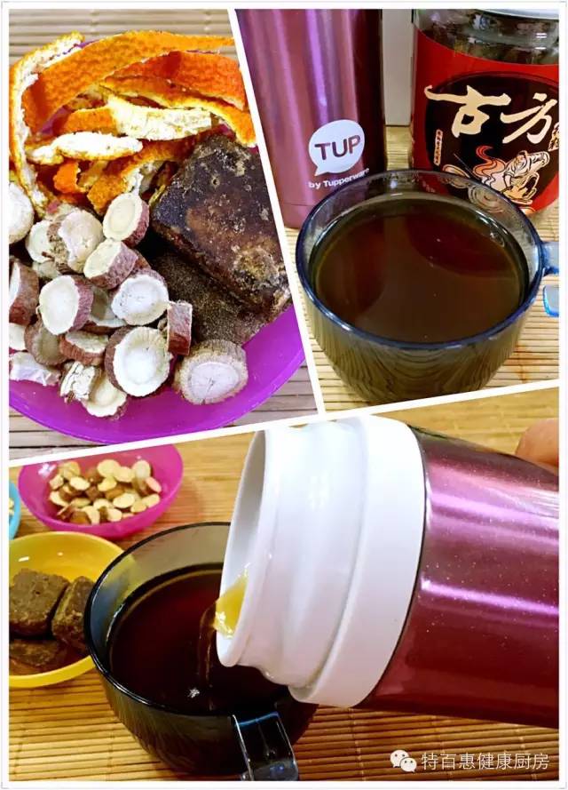 【做法】采用下泡法,將古方紅糖、枸杞、甘草一起放入特百惠茶韻保溫杯,蓋上濾格,倒入煮沸的納美凈化水,蓋上瓶蓋,放置20分鐘,過濾出茶飲即可飲用