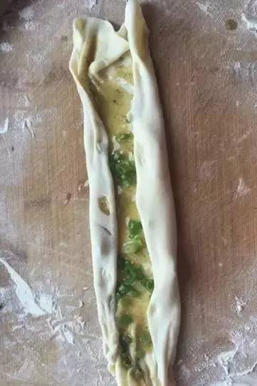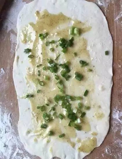 4.搟成薄片,涂上油酥撒上蔥花即可