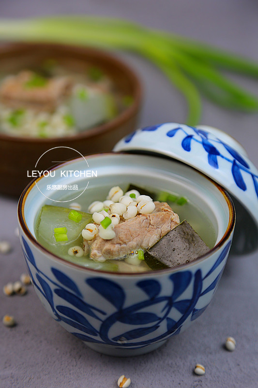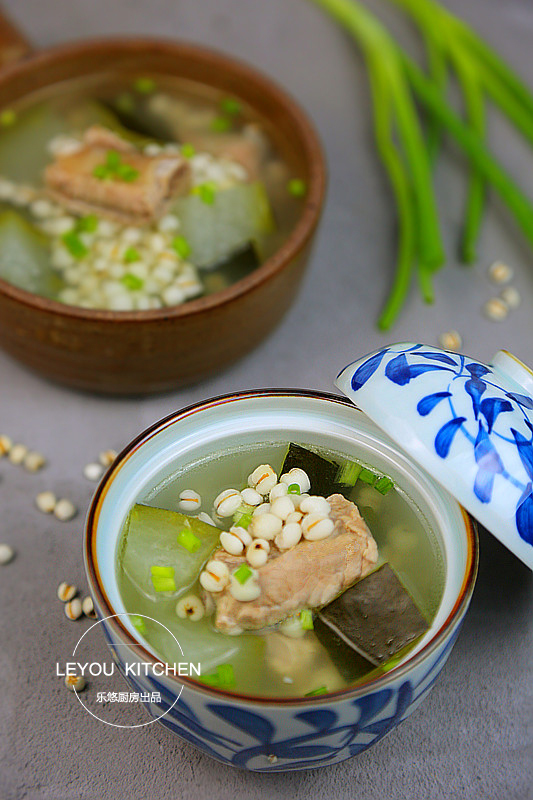 薏米,在《神農(nóng)本草經(jīng)》將其列為上品,食用可以治濕痹,利腸胃,消水腫,健脾益胃,久服輕身益氣。冬瓜味甘、性寒,有消熱、利水、消腫的功效。二者與排骨相結(jié)合,湯清味美,夏天喝正合適哦~