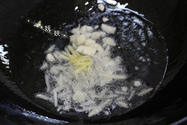 8,下苦瓜進(jìn)去翻炒,火要大,翻動(dòng)的要快,不要加水。