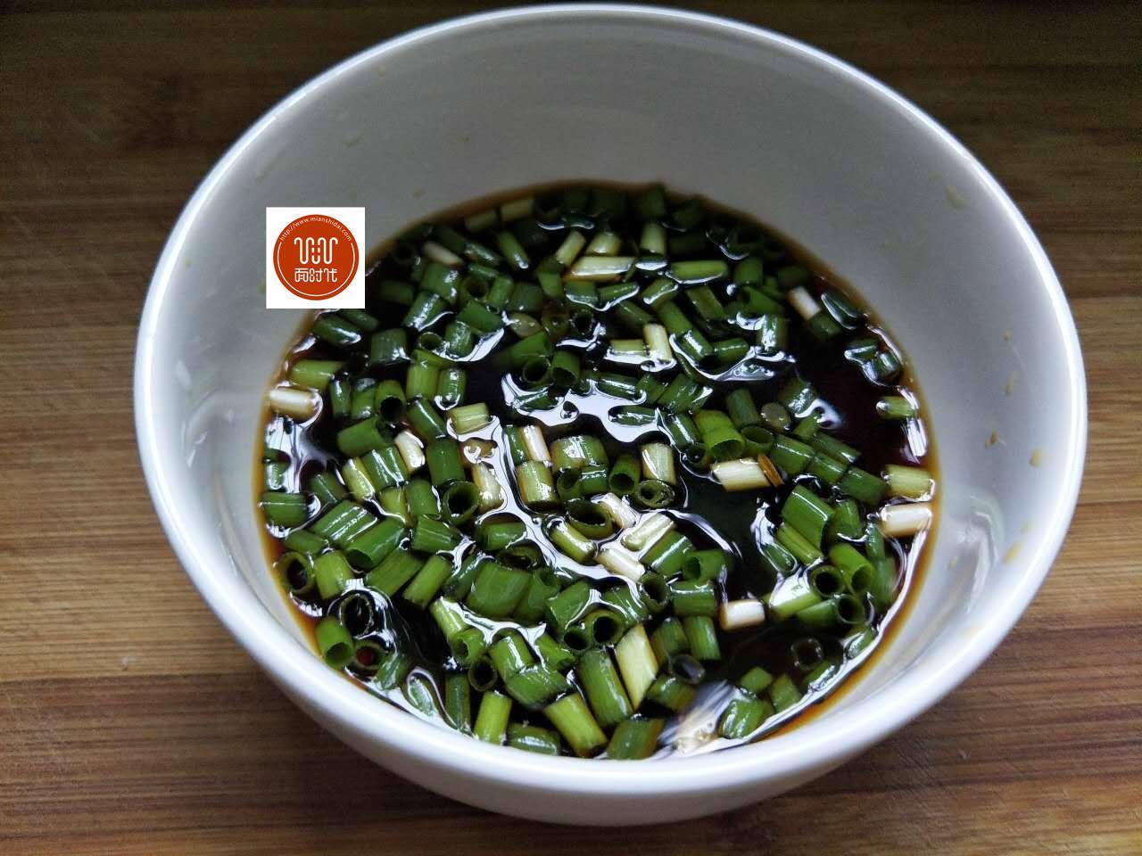 4、準(zhǔn)備一個(gè)碗,加入生抽,蠔油,白糖,蔥花,半碗水,攪拌均勻。