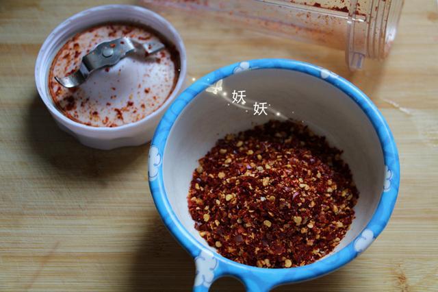 5,有辣椒粉的可以直接用辣椒粉,我用干辣椒,自己打粉。