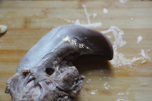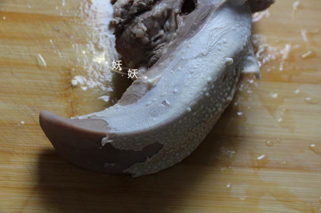 3,取出豬舌頭,做下一步處理。這層白白的舌苔用刀子輕輕一刮就掉了,很容易的。