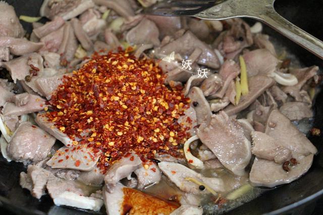 10,加入辣椒粉,料酒,老抽。不要加水,料酒稍微多加一些。