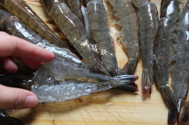 用料:大蝦適量,大蒜兩個(gè),鹽半勺,糖兩勺,植物油適量,小蔥兩根