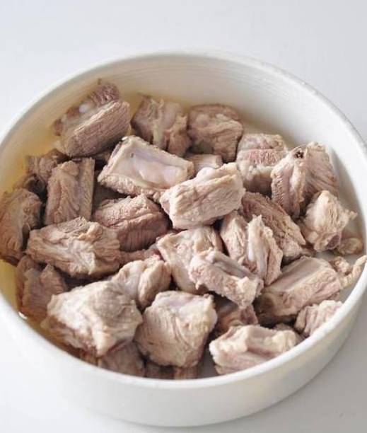 兌水淹沒(méi)排骨,大火燒開(kāi)。轉(zhuǎn)小火燉30-50分鐘。調(diào)入鹽