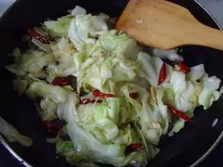 3、出鍋前烹入醋可以保持包菜的爽脆。