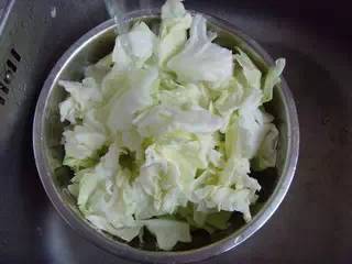 1、包菜去外層菜葉,手撕成塊狀,清水洗凈瀝水。