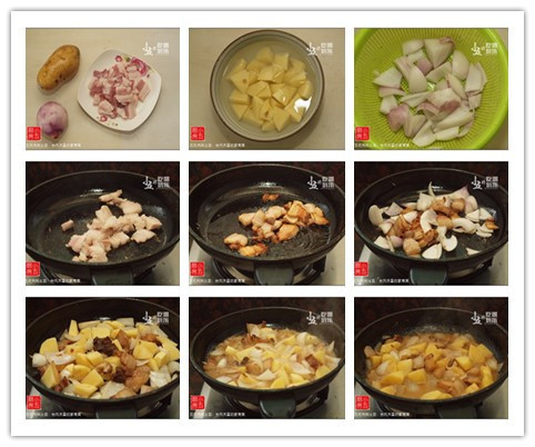 【食材】土豆1個、洋蔥1個、五花肉200g、鹽適量