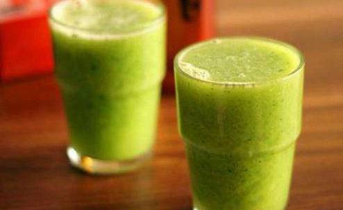 3、把切好的獼猴桃和黃瓜塊放入攪拌機中,榨成汁,調(diào)入蜂蜜即可。