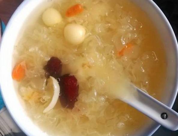 4、將處理好的銀耳,蓮子,桂圓肉,枸杞一起倒入煲內(nèi),加適量水,煮開后加入冰糖,轉(zhuǎn)中小火繼續(xù)燉煮90分鐘左右即可。