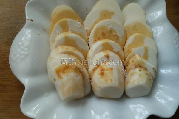 2.切成片擺入盤中,淋上味極鮮。