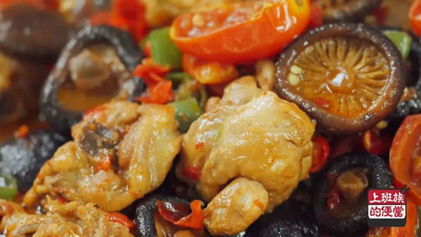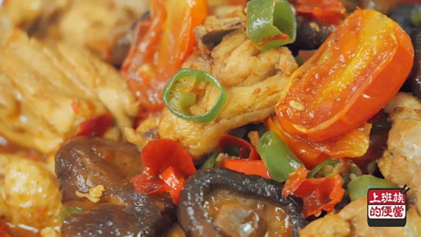 這時(shí)加入香菇和香菇水,煮開后轉(zhuǎn)中火燜煮15分鐘,讓湯色變濃變香。燜煮完成后加入半勺鹽,放入青紅椒,用鍋鏟推勻后再燜煮3分鐘煮出辣椒的辣味,時(shí)間到后這道茄汁雞就可以出鍋啦;