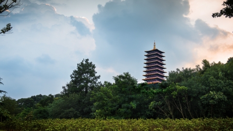 佛頂塔是佛頂圣境的標(biāo)志性建筑之一,九級(jí)四面,與明代弘覺寺塔相為呼應(yīng),重現(xiàn)歷史上牛首山“雙塔”的恢弘格局。