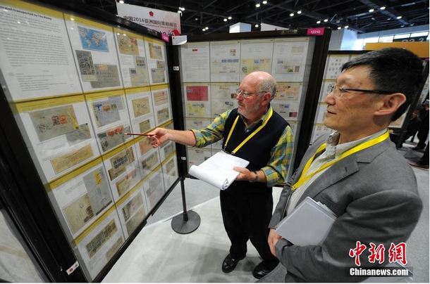 圖為工作人員在2016亞洲國際集郵展覽上對展出郵票進行評選。胡雁 攝