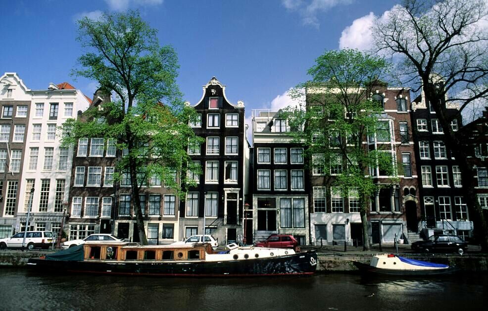 阿姆斯特丹是當(dāng)之無愧的“北方威尼斯”,作為一個(gè)與水相伴,因水而生的城市,阿姆斯特丹河渠縱橫、密如蛛網(wǎng),古老的城市由上百條水道與上千座橋梁井井有序地編織形成,運(yùn)河里永遠(yuǎn)都是游船如織,而運(yùn)河邊上則是鋪有鵝卵石的綠茵籠罩的街道,古老的建筑倒影在碧波蕩漾的河水里,岸邊是一排排古色古香的山墻房子。阿姆斯特丹的城市色彩深得梵高氣質(zhì),屋頂是鵝明黃、淺灰綠或是土黃、磚紅色,陽光把毫不吝嗇地?fù)]灑在這些濃烈的色彩上,阿姆斯特丹的風(fēng)情盡數(shù)在此刻綻放。