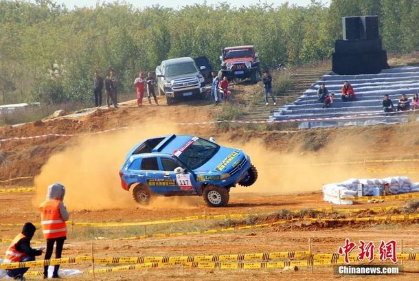 當(dāng)天進(jìn)行的排位賽中,伴隨著發(fā)動(dòng)機(jī)的轟鳴聲,疾馳的賽車揚(yáng)起陣陣塵土。中國汽車場地越野錦標(biāo)賽與中國房車錦標(biāo)賽、中國汽車?yán)﹀\標(biāo)賽并列為中國汽車三大賽事,至今已經(jīng)有11年歷史。朱柳融 攝
