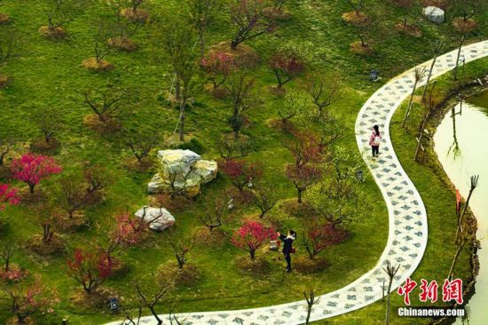 2月25日,航拍江蘇鹽城大豐梅花灣,關(guān)不住的滿園春色撲面而來(lái),吸引了眾多市民和游客前來(lái)踏青。泱波 攝