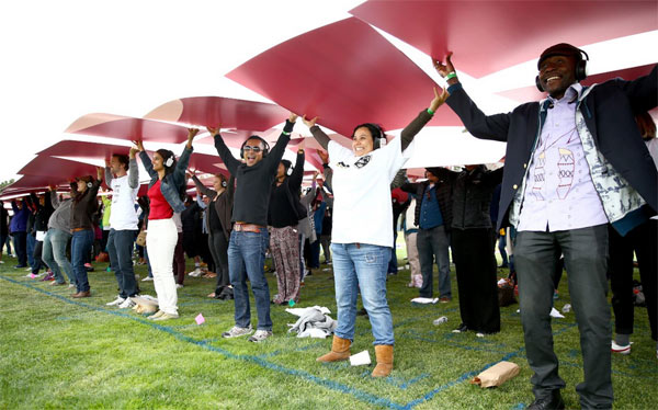 為向世界傳遞“洛杉磯歡迎你”的信息,洛杉磯會(huì)議及旅游局(下文簡(jiǎn)稱洛杉磯旅游局)于洛杉磯當(dāng)?shù)貢r(shí)間的5月6日(星期六),組織上千名洛杉磯本地居民,在飛機(jī)飛過時(shí),在地面上共同舉起指示牌組成一個(gè)人工歡迎語,堪稱世界上最大的人體歡迎語之一。