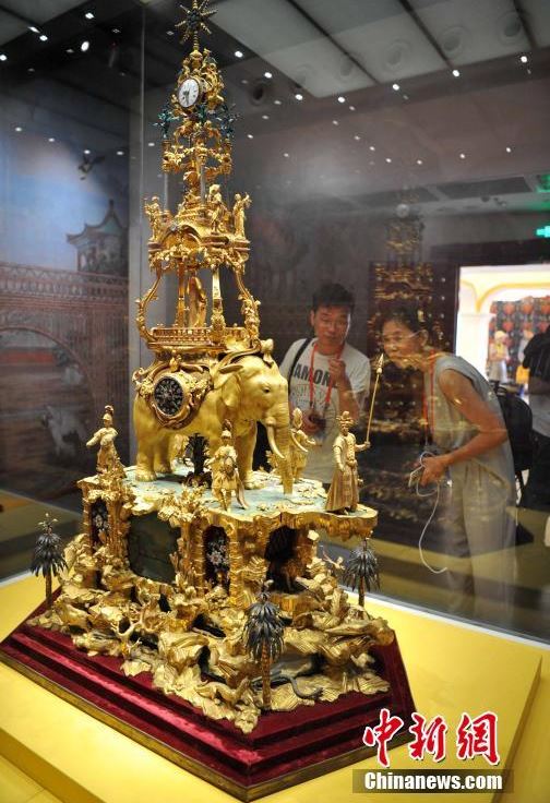 5月12日,媒體記者在故宮鼓浪嶼外國文物館參觀十八世紀(jì)英國制造的銅鍍金象馱轉(zhuǎn)花鐘。經(jīng)過兩年多的籌備,故宮鼓浪嶼外國文物館將于13日在廈門鼓浪嶼落成開館,這也是故宮博物院首次在地方設(shè)立主題分館。據(jù)了解,故宮鼓浪嶼外國文物館占地面積11000平方米,建筑面積5180平方米。