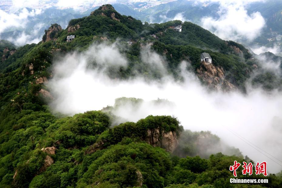 6月8日,雨過天晴的河南老君山云海翻涌,宛如仙境。 中新社記者 鐘欣 攝