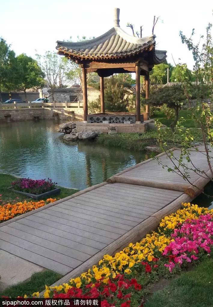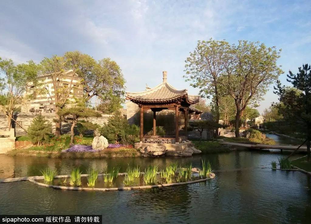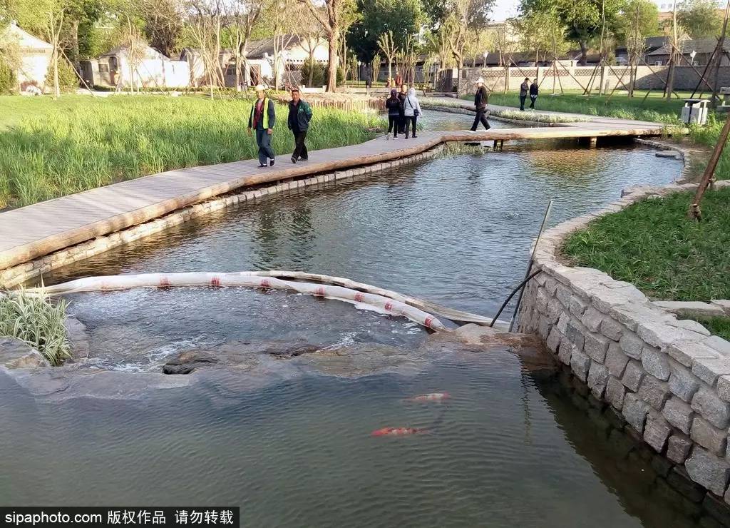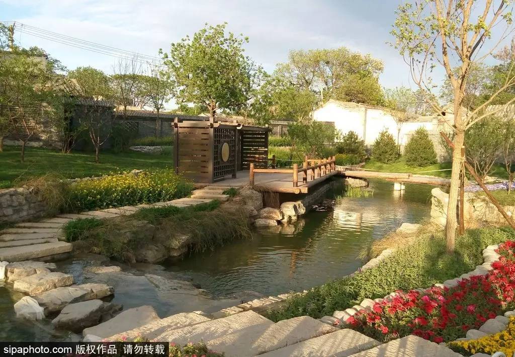 一條小河,增加了鮮活和靈氣,河道曲折蜿蜒,荷花池、碾子、石橋、水,不時(shí)躍入眼簾……