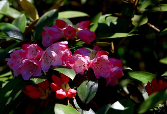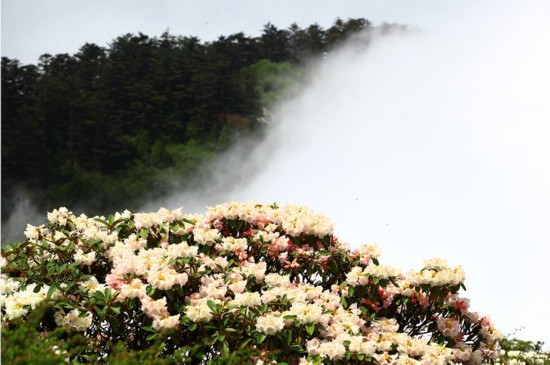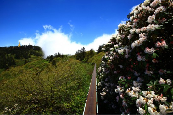 峨眉山有杜鵑王國之稱,4月至6月是觀賞杜鵑花最佳的時節(jié),從海拔500米的報國寺到海拔3099米的萬佛頂,各類杜鵑次第開放,高低遠(yuǎn)近,千姿百態(tài),花深似海。金頂,不僅是觀賞金佛、日出、云海、晚霞、佛光和圣燈奇觀的最佳景點,更是觀賞世界杜鵑花的珍品――金頂杜鵑的最佳觀賞地。