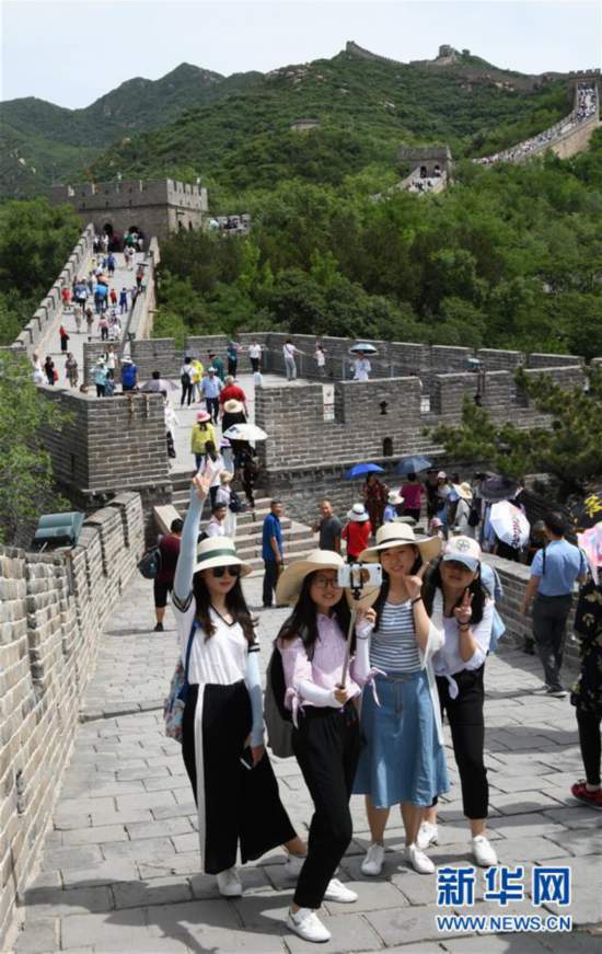 6月10日,游客在北京延慶區(qū)八達(dá)嶺長城留影。 新華社記者 李欣 攝