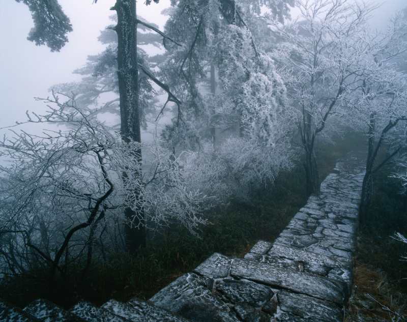 雪后黃山,云白雪白,高潔靜謐,如臨仙境。積雪浮在云端之上,遇上朝夕霞光,親臨見之方感祖國大好河山的壯美。
