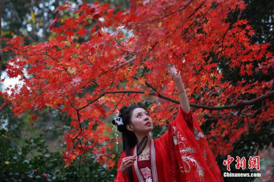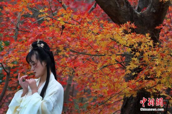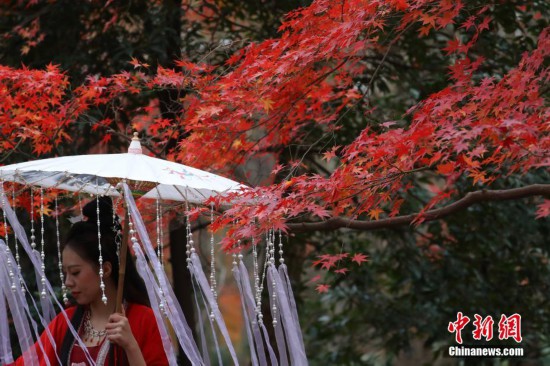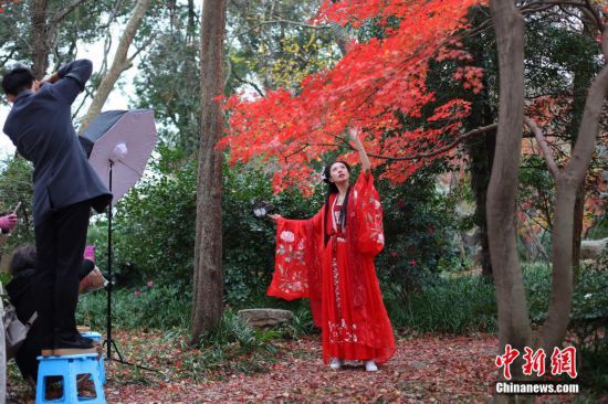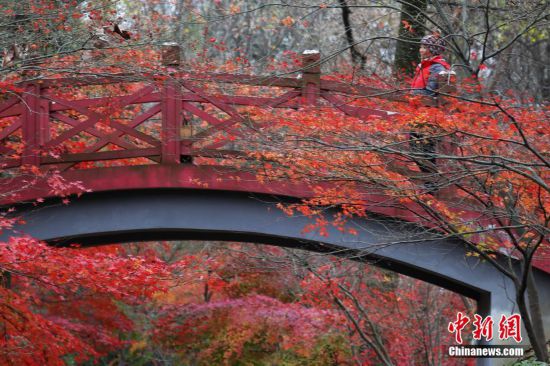 12月5日,南京紫金山紅楓崗枝葉層疊,吸引了大批市民漫步其中,欣賞多彩“楓”景。中新社記者 泱波 攝