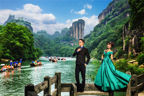 當(dāng)?shù)厝私Y(jié)婚都喜歡到玉女峰下合影,以示“與子偕老”(攝影:武夷山鐘愛一生婚紗攝影)