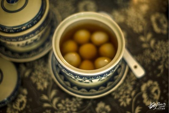古村的老街并沒有因?yàn)橛慰偷脑黾佣兊蒙虡I(yè)化,依然古樸自然。朋友熟門熟路地帶我們走進(jìn)老街上一家名字叫做“嘻好邑”的小吃店。店里只賣紅茶湯圓、扁肉(餛飩)、手工拌面和老面肉包四樣小吃,但味道都很驚艷,除了游客,本村人也每天光顧。尤其是紅茶湯圓,清香的茶味中和了湯圓的甜膩,我們連湯都喝干了!