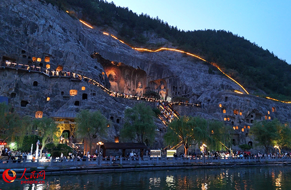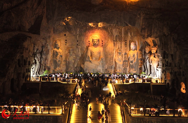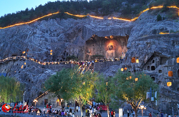 夜幕降臨,龍門石窟內(nèi)仍是人潮涌動。人民網(wǎng) 宋芳鑫攝3