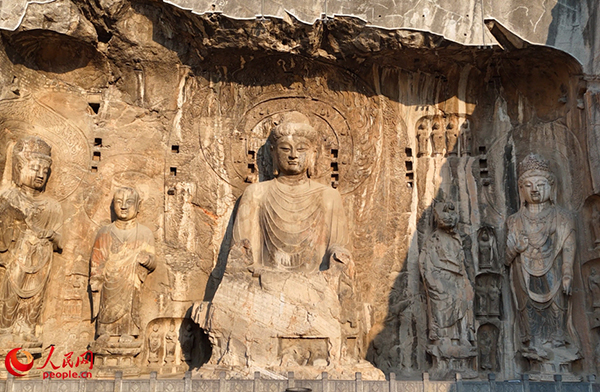 奉先寺內(nèi),盧舍那大佛莊嚴肅穆 。人民網(wǎng) 宋芳鑫攝