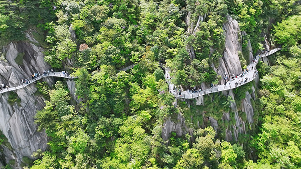 今年暑假,九華山“清涼游”備受游客熱捧。在天臺景區(qū),兩面巨大的山體墻壁上,199個紅色“福”字在綠樹青山映襯下格外耀眼。游客們乘坐索道登臨天臺途經(jīng)此處,或踮腳觸摸福字,或拍照打卡,或手機直播,招福納祥,創(chuàng)造屬于自己的儀式感。