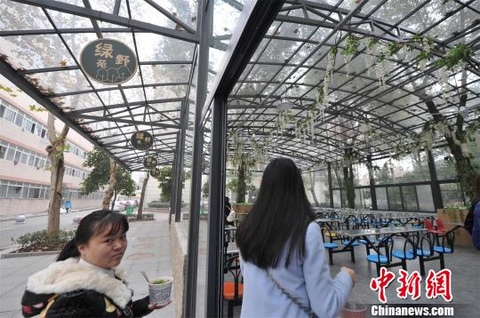 “原來(食堂環(huán)境)擁擠、嘈雜,森林餐廳環(huán)境輕松愉悅,給人耳目一新的感覺。”該校大二學生魏文麗說,吃飯時看看綠樹、白云,可以減壓。