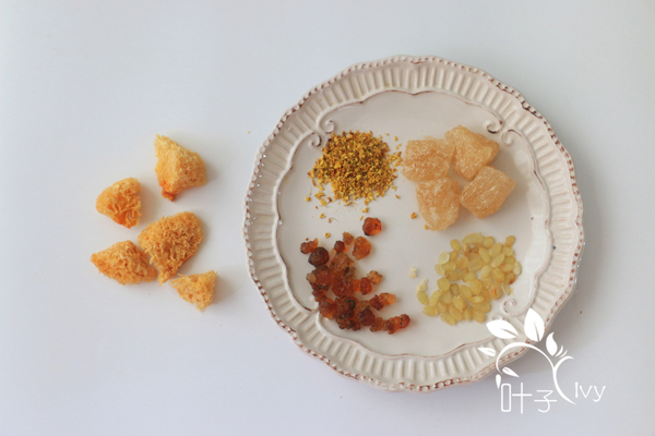 桂花3克 銀耳10克 桃膠10克 皂角米10克 冰糖適量